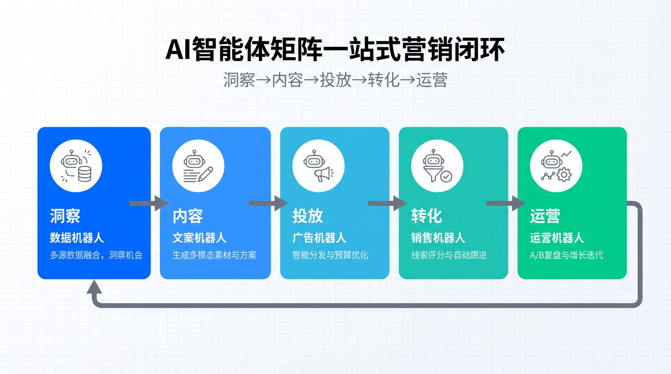 的AI营销东西应内置强大的AIGC引擎,但这仅仅是故事的起头。它之所以主要,矩阵引擎无疑是降本增效的利器。内容出产效率和线索量获得数倍增加,能跨平台整合阐发数据,从动生成竞品阐发、客群洞察和商圈研究演讲。这对于合作激烈的消费品市场至关主要。通过一个整合的AI智能体矩阵,